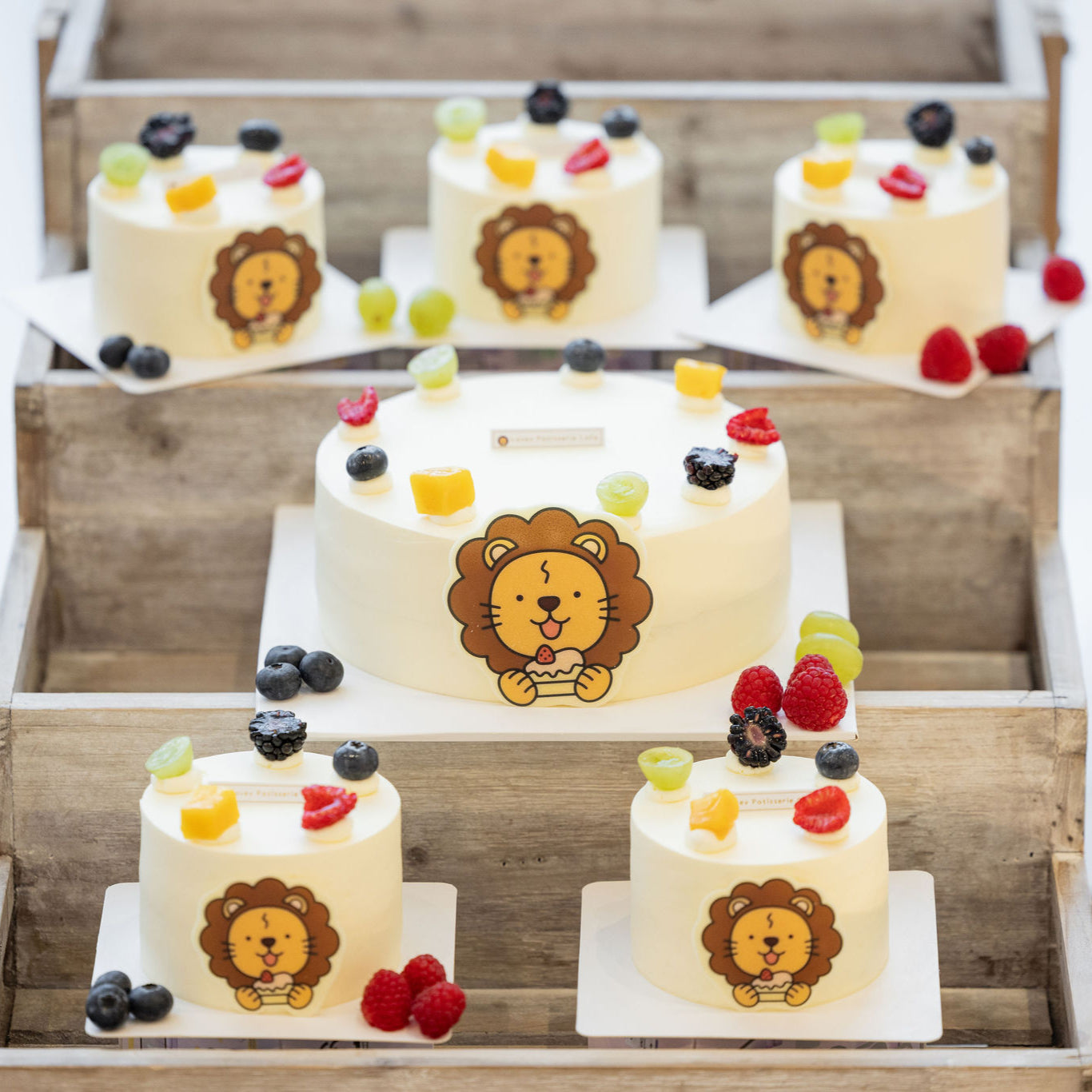 Fluffy plain chiffon sponge layered with silky Chantilly cream, topped with seasonal fruits ๐๐๐ and finished with our signature Lovey lion white chocolate plaque ๐ฆ๐